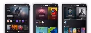 La parte superior muestra tres pestañas, dedicadas a los contenidos audiovisuales (series y películas), videojuegos y libros. En cada una de ellas ofrece una vista de las plataformas y juegos más recientes, así como recomendaciones de contenido.