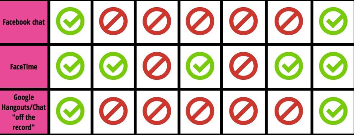- EFF (https://www.eff.org/secure-messaging-scorecard)