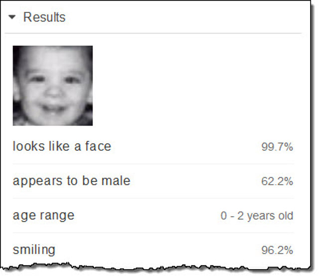 Entre el resto de funciones del servicio se encuentran otras que estiman si la persona que aparece en una imagen es un hombre o una mujer, si lleva o no gafas o si está 'feliz' o 'confusa', basándose en la expresión facial. Estas apreciaciones aparecen junto a un porcentaje que expresa el grado de seguridad de la aplicación. Además de caras, Rekognition también es capaz de reconocer objetos y animales.