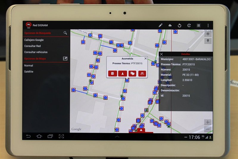 Una vez que los técnicos han recibido una alerta de avería por SMS, pueden desplazarse rápidamente hasta el punto de la incidencia guiados por la aplicación mediante GPS del terminal. Allí, disponen de la cartografía y la red de gas de la zona con sólo dar unos toques en su tablet o teléfono. Además, también tienen la opción de consultar qué unidades de la flota de vehículos están más cercanas, lo que permitirá que lleguen antes y ahorren combustible.