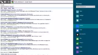 El punto en el que queda más desarrollo es en el de hacer que Firefox aproveche las funcionalidades de Windows 8. Por el momento ya se ha conseguido introducir el buscador propio del sistema, fundamental en Windows 8, y sobre todo poder aprovechar la función que permite ejecutar el buscador y una aplicación al mismo tiempo, partiendo la pantalla. Se trata de avances importantes, pero todavía queda trabajo.