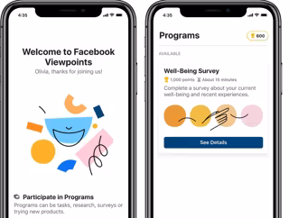 Facebook ha lanzado una nueva 'app' de investigación de mercado denominada Facebook Viewpoints que permite a sus usuarios obtener recompensas económicas a cambio de participar en encuestas, funciones, investigaciones y en la prueba de nuevos productos, con el fin de mejorar los servicios que ofrece la plataforma.