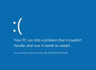 La 'pantalla azul de la muerte' es una pantalla con fondo azul que notifica un error en el sistema del que no puede recuperarse. Con Windows 8 sufrió un lavado de cara, con la adición del emoticono de la carita triste y un fondo azul de un tono más claro.