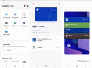 Samsung Wallet ofrece a los usuarios acceso a sus tarjetas de pago, tarjetas de fidelidad y membresía, así como la funcionalidad de Samsung Pass, que almacena de forma segura las contraseñas y verifica la identidad de los usuarios con sus datos biométricos para iniciar sesión en aplicaciones y servicios.
