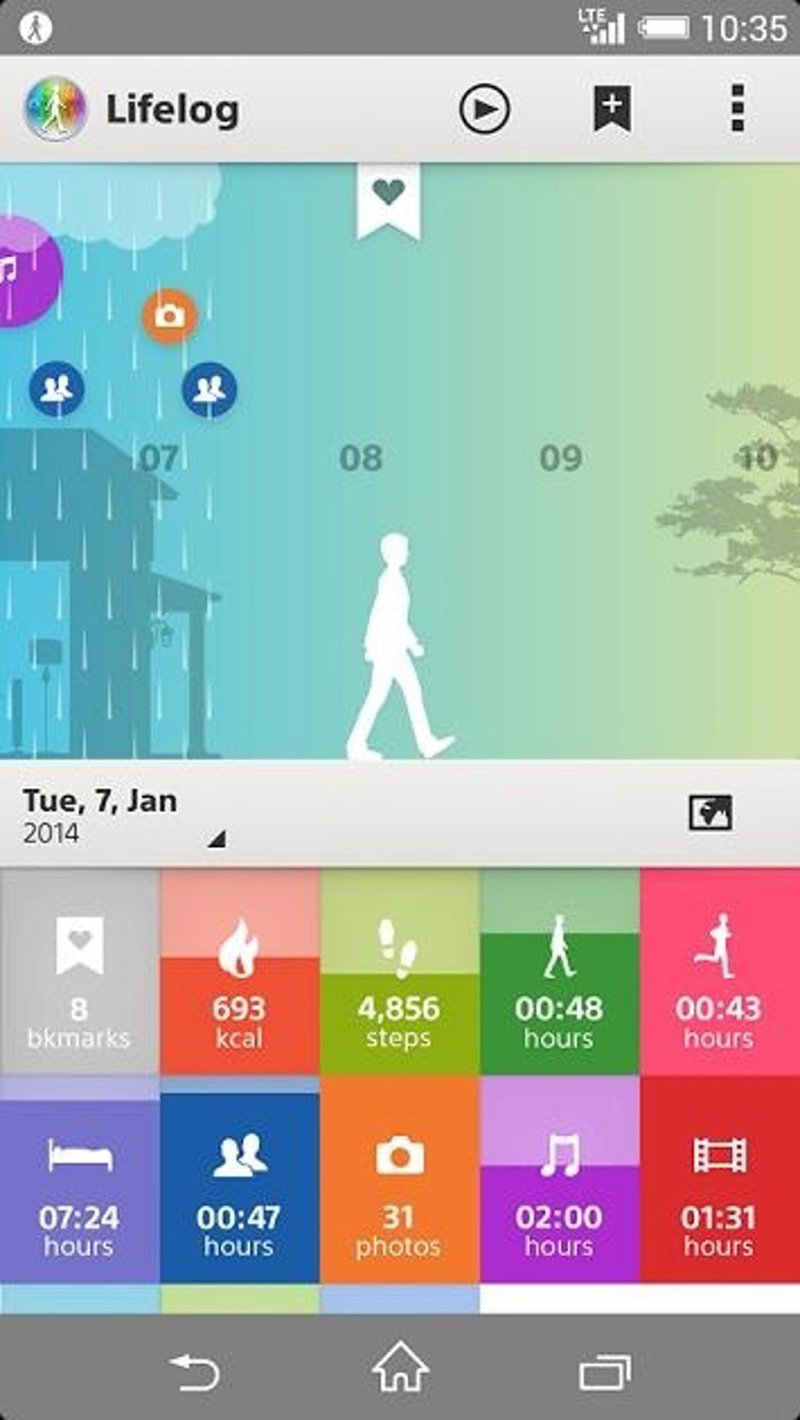 La aplicación Lifelog permite capturar fácilmente la vida y mejores momentos del usuario, como los lugares visitados, música escuchada, juegos, libros leídos, etc. Además, presenta estos datos en una interfaz intuitiva y visual, que fue como la describió Sony en su presentación en el Mobile World Congress 2014 de Barcelona el pasado mes de febrero.