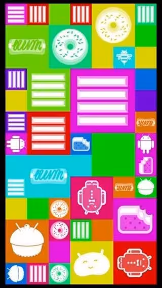 Si se mantiene presionado, en el teléfono aparece un colorido mosaico interactivo, hecho con iconos que representan a todas las versiones de Androir, todas inspiradas en dulces: Cupcake (1.5), Donut (1.6), Eclair (2.0 - 2.1), Froyo (2.2), Gingerbread (2.3), Honneycomb (3.2), Ice Cream Sandwich (4.0), Jelly Bean (4.1 - 4.2 - 4.3) y, finalmente, Android KitKat (4.4).