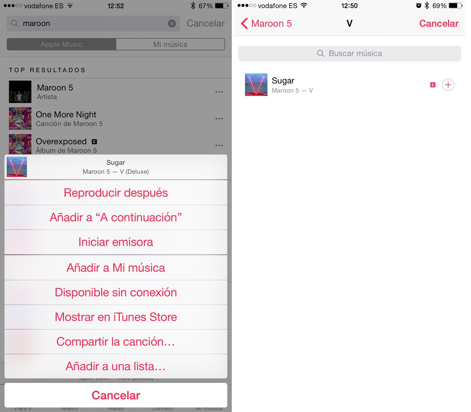 Si queremos una canción nueva, lo primero que debemos hacer es ir a la aplicación Música de iOS y buscarla, ya sea a través del nombre del artista y navegando o directamente con el título. Después, pulsando sobre los tres puntos, debemos añadir la canción a nuestra biblioteca, da igual si elegimos 'Mi música', como si la añadimos a una 'playlist'. Esta decisión dependerá de si solo queremos tener la canción en nuestra biblioteca o en una lista que escuchemos habitualmente.