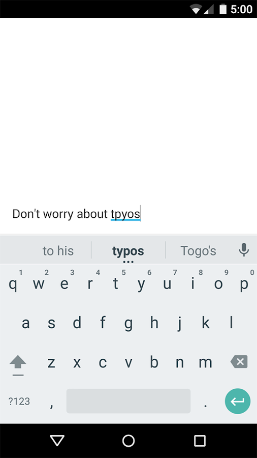 La actualización del teclado a Material Design introduce otras características como son la posibilidad de deslizarse por las letras con la escritura gestual. Este teclado también permite redactar notas con la voz.