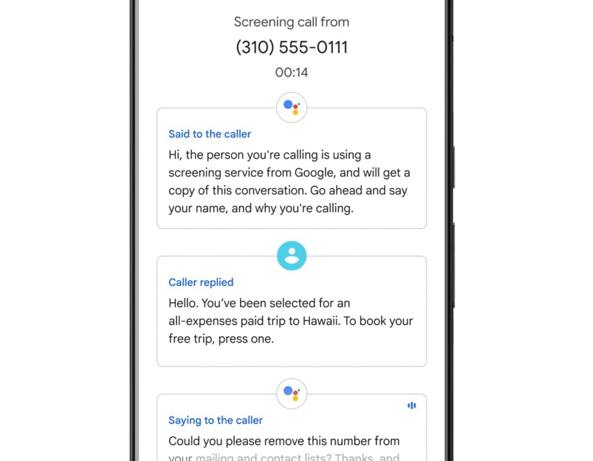 La persona que llama puede responder. La conversación que mantenga con el Asistente se transcribirá en la pantalla, para que el usuario del teléfono Pixel la lea y pueda decidir si contesta a la llamada, o la denuncia como spam o incluso solicitar las información mediante los botones con opciones que aparecen en la parte inferior.