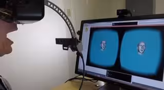El equipo de Oculus VR ha desarrollado, junto con un grupo de investigadores de la Universidad de Sur de California, una forma de monitorizar las expresiones faciales de una persona que lleva puesto un casco de realidad virtual Oculus Rift para transferir los gestos a un avatar.