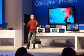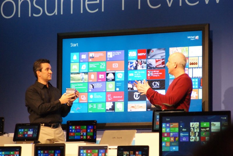 El presidente de Windows y Windows Live, Steven Sinofsky, ha sido el encargado de conducir la presentación del sistema operativo en Barcelona. La versión Consumer Preview mostrada cuenta con más de 100.000 mejoras con respecto a la de desarrolladores mostrada en septiembre de 2011. Además de mejoras en la estabilidad y la usabilidad del SO, se han incluido muchas aplicaciones en versión preview en la Windows Store, conexión gracias a la nube entre los PC y móviles con Windows y la versión preview 5 de Internet Explorer 10.