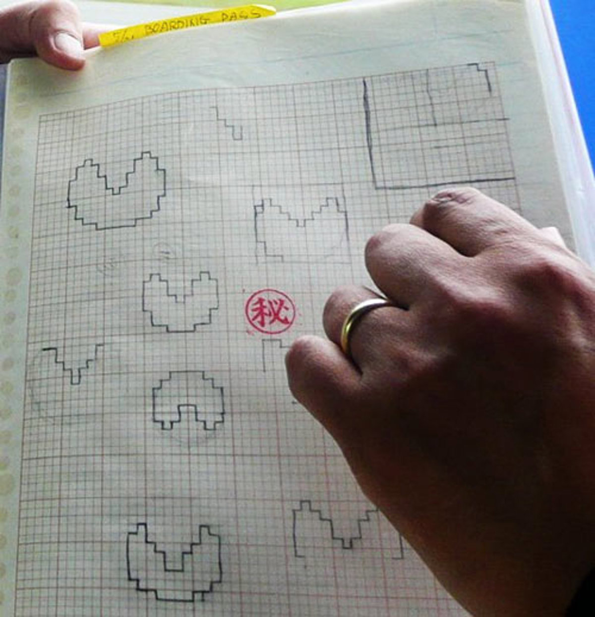 En ellos se puede ver cómo el Iwatani dibujó cada píxel hasta dar con la forma del popular comecocos. También se puede ver cómo sobre el papel, el desarrollador nipón imaginó el diseño de los niveles y los marcadores, con las vidas y los indicadores de puntuación.