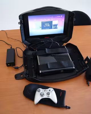 El fondo del maletín tiene una pieza reversible para que encajen tanto el modelo clásico de Xbox 360, como el modelo Slim, así como PS3 Slim. El único diseño que no contempla el maletín es el de la PlayStation 3 grande, el modelo original. Sin embargo, esta consola también encaja con la base para la Xbox 360 clásica, y gracias a las correas con velcro del interior, la máquina queda bien fijada.