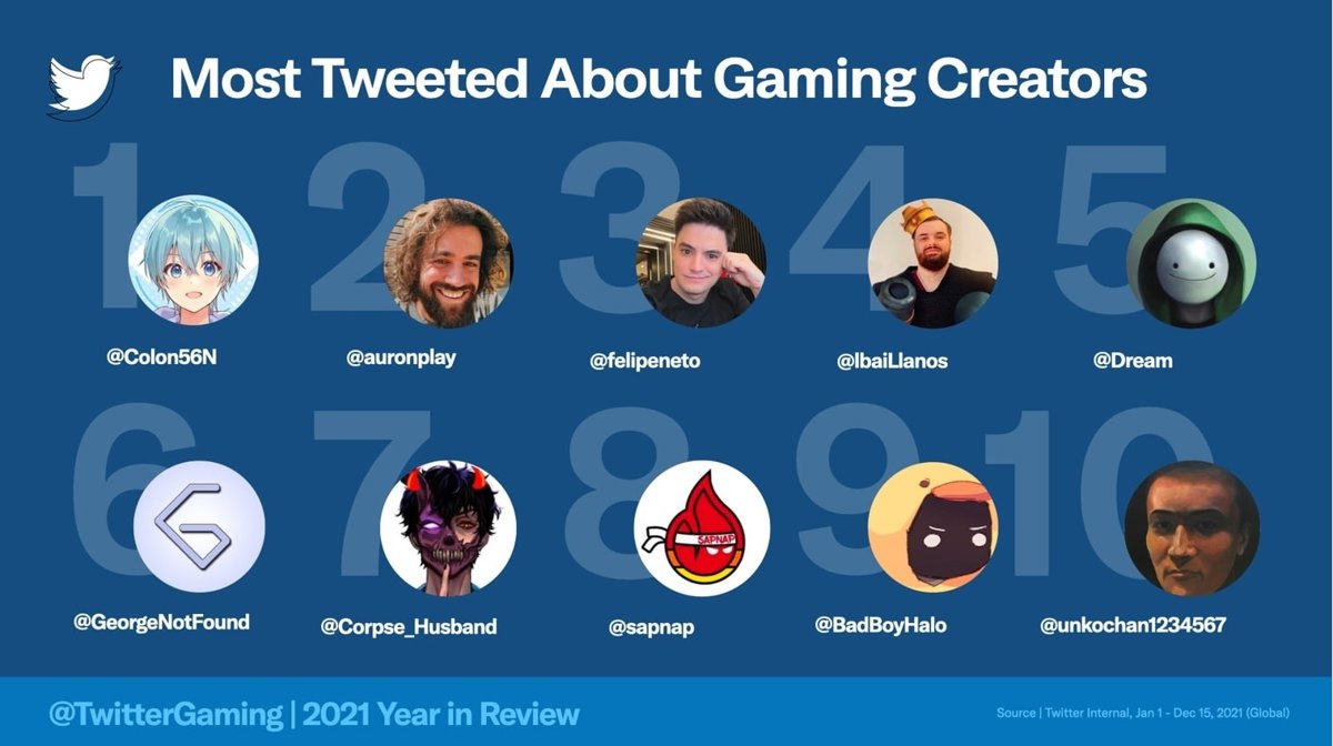 Los creadores de gaming más comentados en Twitter en 2021. - TWITTER OFICIAL