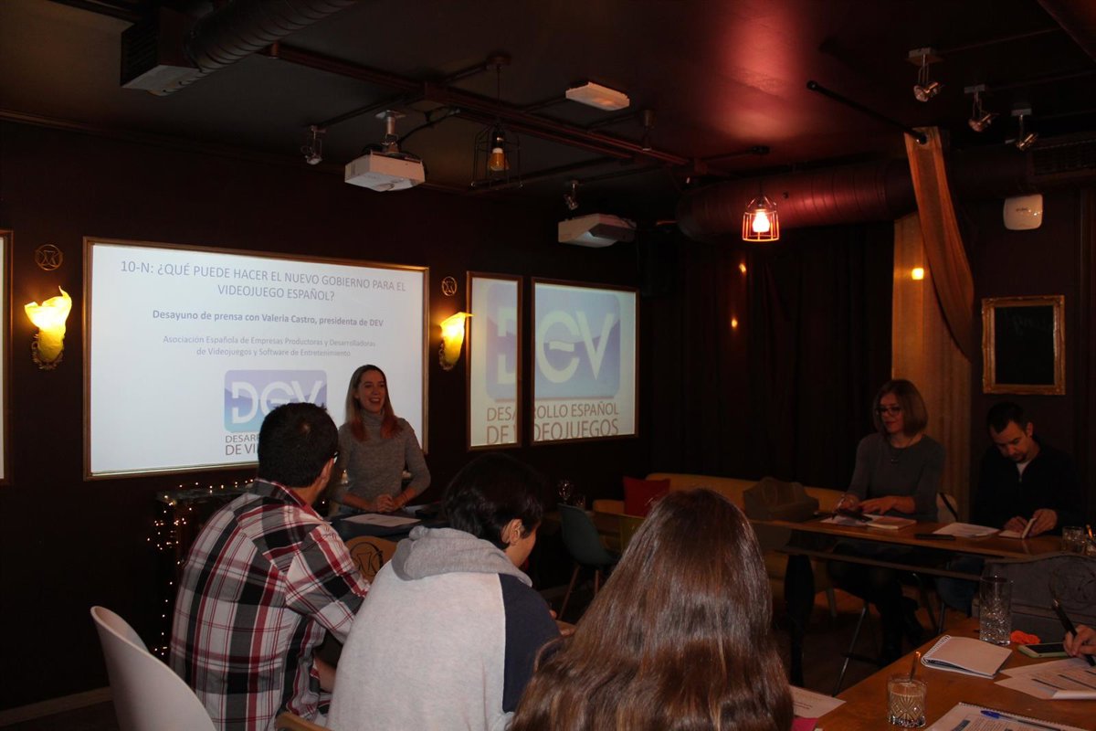 La presidenta de DEV, Valeria Castro, ha presentado este miércoles en un encuentro con la prensa celebrado en Madrid, las diez propuestas que hacen a los partidos políticos para que el futuro gobierno valore su aplicación. "La industria del videojuego lleva unos años estancada", ha declarado Castro, señalando la importancia de la aplicación de estas medidas que, asegura, "pueden ayudarnos a mejorar".