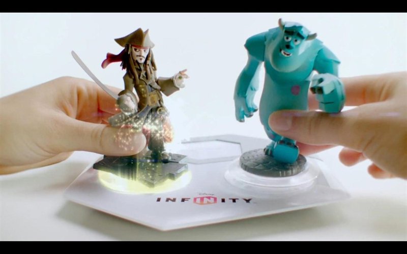 Disney hace posible que los niños trasladen sus muñecos de plástico del Capitán Jack Sparrow de Piratas del Caribe, Sully de la película Mounstruos SA, Mr. Increíble y otros personajes de la factoría al mundo virtual con Disney Infinity.