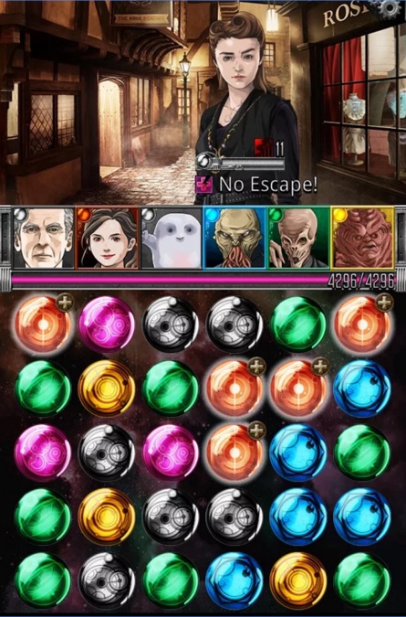 El Doctor y sus aliados tienen cada uno predefinida una gema de un color, de manera que, según juntes gemas, por ejemplo, rojas o azules, será el Doctor o X aliado quien ataque. Además, los adversarios pueden herirte durante sus turnos y para recuperar la vida perdida tendrás que juntar gemas de un determinado color. Cada uno de los personajes tiene una habilidad de ataque especial.