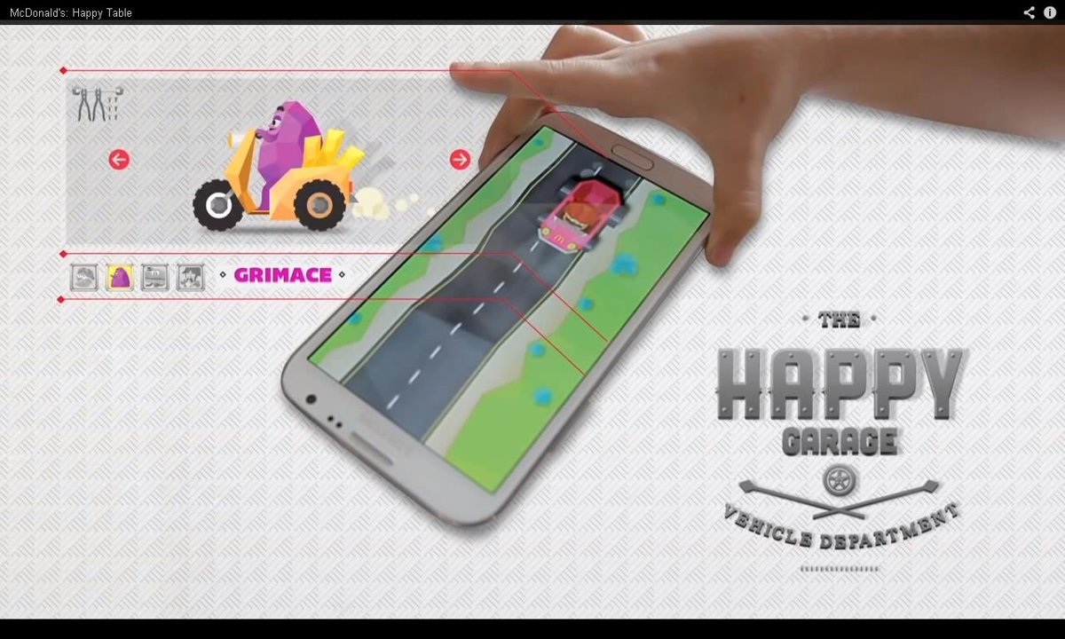 McDonald's ha ingeniado un nuevo juego para los niños con el cual las mesas de sus establecimientos se transforman en circuitos de carreras. Este sistema, llamado Happy Table, se basa en la tecnología NFC y precisa de un 'smartphone' para poder seguir el juego en la pantalla de este.