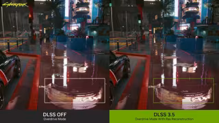 DLSS 3.5 desactivado (izq.) y activado (derch.) en Cyberpunk 2077 - NVIDIA