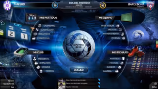 La imagen corresponde a la pantalla 'Día del partido, desde la que los jugadores podrán ser el entrenador, el director deportivo y el presidente de su propio club de fútbol.