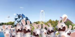 El aterrizaje de los Rabbids en Futuroscope cuenta con la colaboración de Ubisoft. La empresa, también francesa, se ha volcado en la puesta en escena de este peculiar hogar para sus alocados