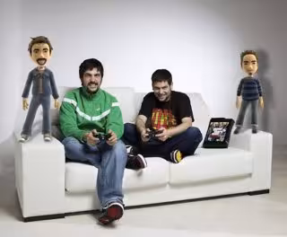 Los hermanos David y José Muñoz juegan con la consola Xbox 360