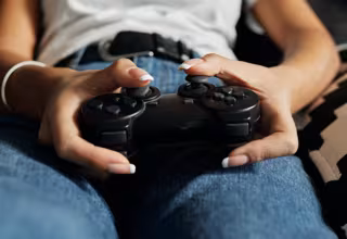 Una mujer utilizando el mando de la PlayStation - PEXELS