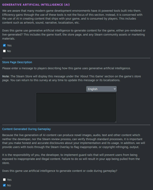 Tras prohibir los juegos que incluían contenidos con IA en junio de 2023, en enero de 2024 Valve tomó la decisión de incorporarlos si los desarrolladores detallaban en una encuesta el uso de esta y aseguraban la legalidad de los contenidos generados con ella. Ahora, la plataforma de videojuegos da otro paso en esta dirección.