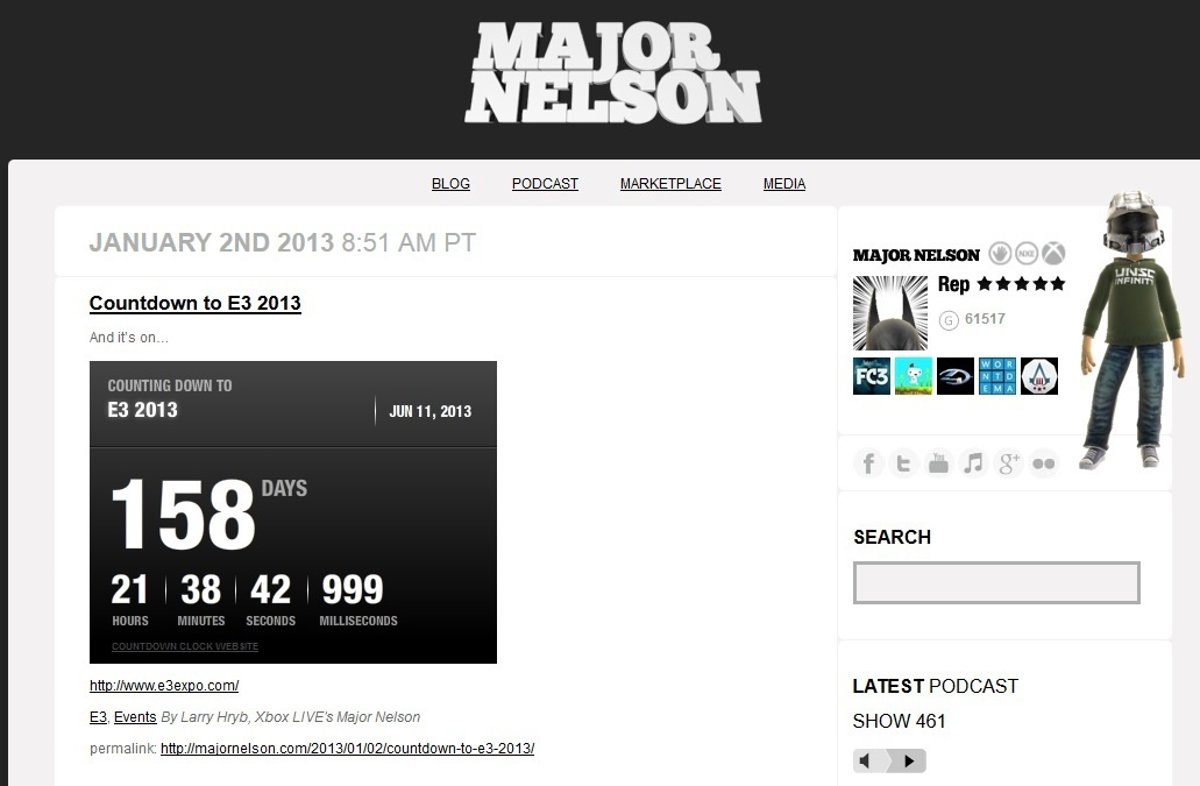 - Blog de Major Nelson (http://majornelson.com/2013/01/02/countdown-to-e3-2013/).