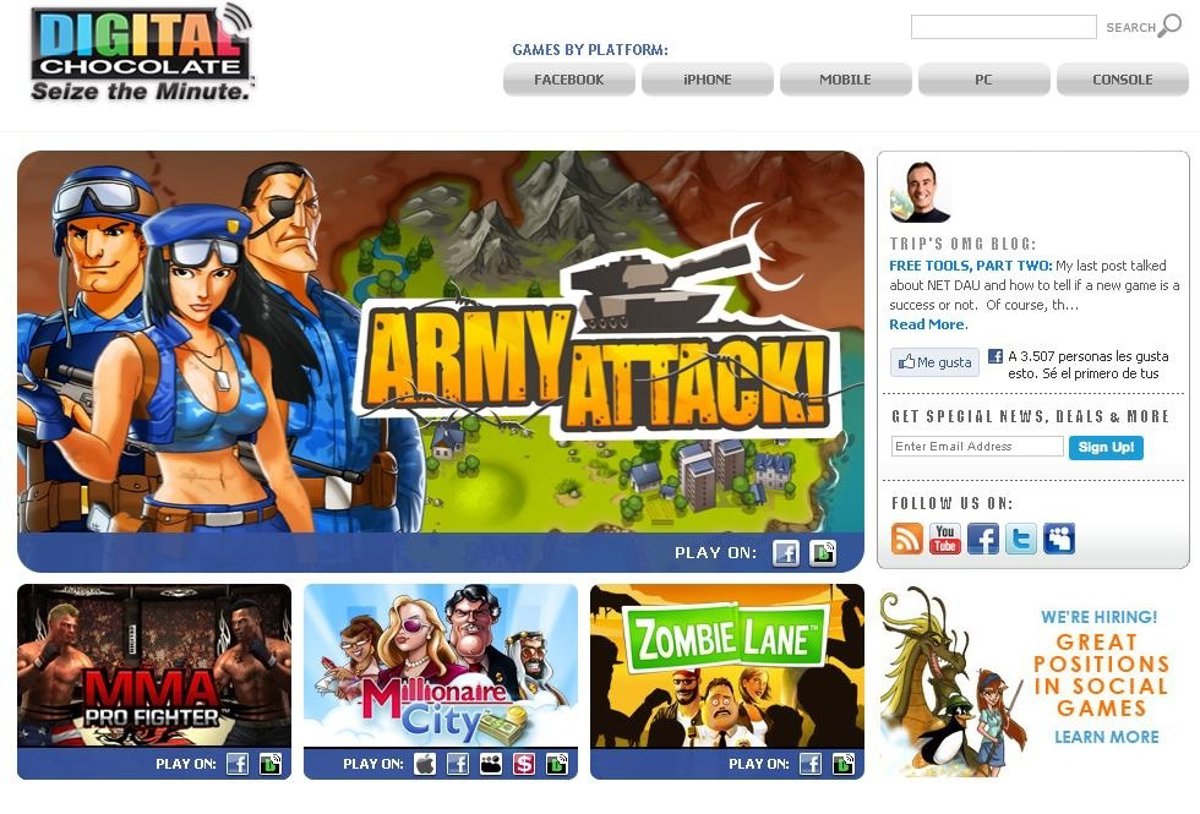 "Nos distinguimos porque hemos cambiado el juego social sin comprar empresas". Según Trip Hawkins, Digital Chocolate es la empresa que "está creciendo más en las redes sociales". El éxito de la compañía se ha debido a juegos como 'Zombie Lane' o 'Millionaire City', títulos que han tenido miles de jugadores en las redes sociales.