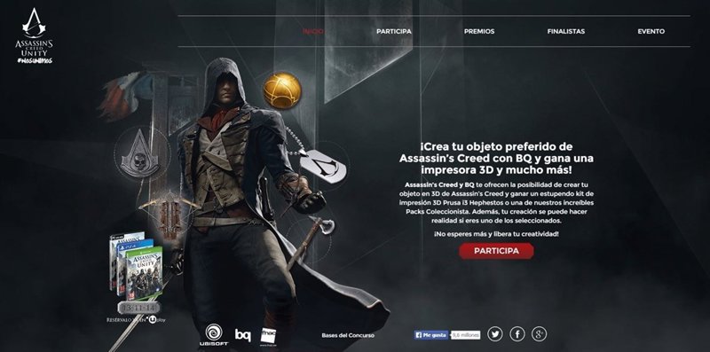 El acuerdo pone en manos de los fans de la saga la posibilidad de dar rienda suelta a su imaginación para crear un objeto basado en la franquicia. Lo mejor, es que la propuesta ganadora se imprimirá en 3D y se incluirá como pieza de coleccionista en la edición limitada de Assasin's Creed Unity.