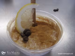 4. Retiramos la rama de canela y la cáscara de limón utilizadas en la cocción y dejamos enfriar a temperatura ambiente. Podemos conservarlo en frio hasta su consumo.