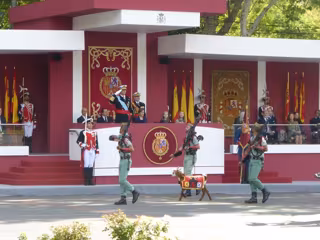 La mascota de la Legión no es el único animal presente el 12 de octubre, ya que desde la creación de la Unidad Militar de Emergencias (UME), hace 11 años, junto a sus efectivos desfilan habitualmente perros que trabajan con ellos en rescates. Pero es evidente que, por el momento, no cosechan el mismo éxito que la mascota legionaria.