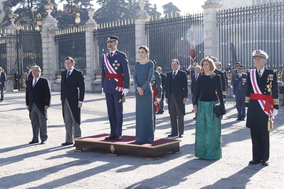 En el salón del trono del Palacio Real, y en presencia de los Reyes Felipe y Letizia, del presidente del Gobierno, Mariano Rajoy, y de la cúpula de las Fuerzas Armadas y la Guardia Civil, Cospedal ha recordado los últimos atentados en Alemania y Turquía, advirtiendo después de que "las fronteras entre seguridad interior y exterior se han difuminado" y que "la única barrera que existe hoy día es la que separa a los que creemos en la libertad, la democracia y los Derechos Humanos de aquellos que hacen todo lo posible por derribarlos".