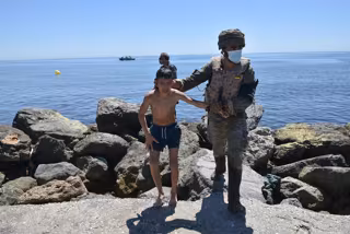 Un militar del ejército español ayuda a un menor migrante procedente de Marruecos a su llegada a Ceuta - Antonio Sempere - Europa Press