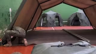 Militares instalando tiendas en Monfarracinos (Zamora) para una campaña de cribado masivo de Covid-19