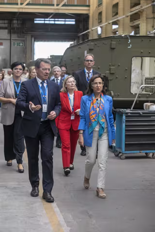 La ministra de Defensa, Margarita Robles, visita la fábrica General Dinamics, a 9 de septiembre de 2022, en Trubia, Asturias (España) - Jorge Peteiro - Europa Press