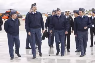Ataviados los dos con sus uniformes del Ejército del Aire --don Felipe como capitán general de las Fuerzas Armadas y don Juan Carlos con su bastón y como capitán general en la reserva--, han llegado por sorpresa a la Base Aérea de Torrejón en torno a las 11.15 horas, abordo de un helicóptero 'Superpuma' del Ala 48 del Ejercito de Aire, pilotado por el Rey Felipe VI.