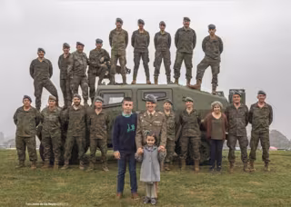 También posa orgulloso con su uniforme Félix, sargento de Infantería e hijo del capitán Jesús Mariano Piñán, fallecido en accidente el accidente del Yak-42 junto a 61 compañeros durante el regreso de la misión en Afganistán en 2003.