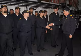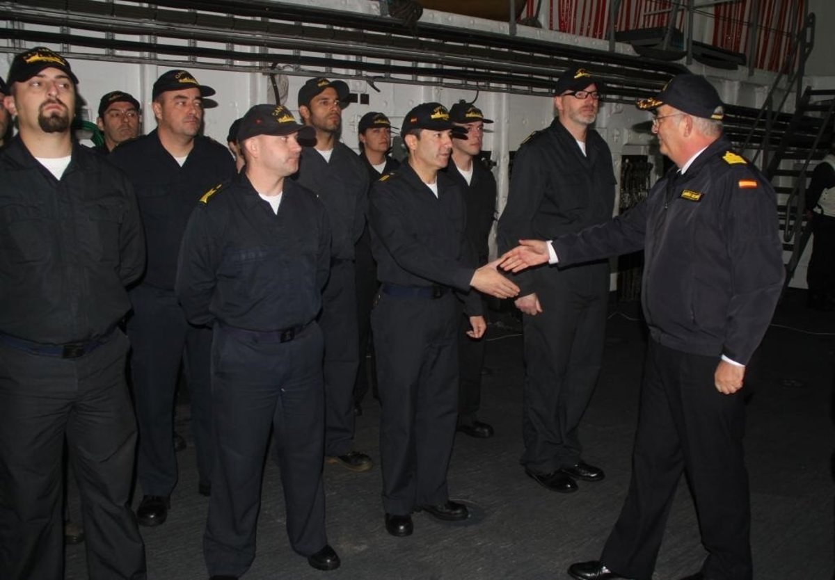 Según indica la Armada en un comunicado, Muñoz-Delgado, que se ha trasladado desde la Base Naval de Rota al buque mediante un helicóptero de la Flotilla de Aeronaves de la Armada, ha realizado la visita en la mar "con objeto de no alterar la llegada del buque a su base, prevista el día 21 de diciembre, y así evitar demoras en el reencuentro de la dotación con sus familiares".
