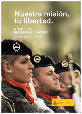 El Ministerio de Defensa ha lanzado este domingo 'Nuestra misión, tu libertad', una campaña publicitaria con motivo del Día de las Fuerzas Armadas 2017, cuyo acto central estará presidido por los Reyes y se celebrará el próximo sábado 27 de mayo en Guadalajara.