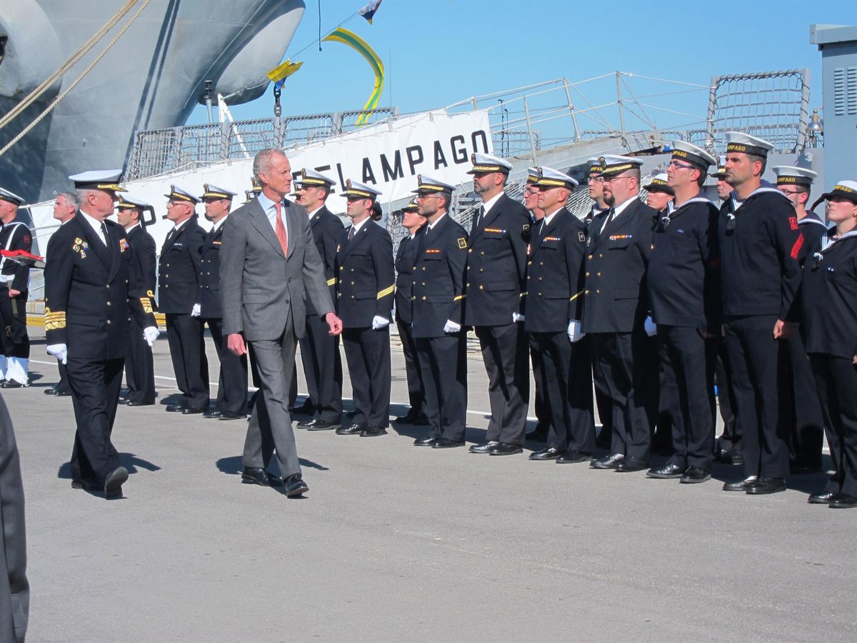 A continuación, se ha realizado una foto de familia y las autoridades --entre las que se encontraban la delegada del Gobierno en Andalucía, Carmen Crespo, el Subdelegado del Gobierno en Cádiz, Javier de Torre, la alcaldesa de Cádiz y diputada, Teófila Martínez, o los alcaldes de Rota y San Fernando, Eva Corrales y José Loaiza, respectivamente-- han subido a bordo del mismo para saludar a la dotación, compuesta por 38 efectivos.