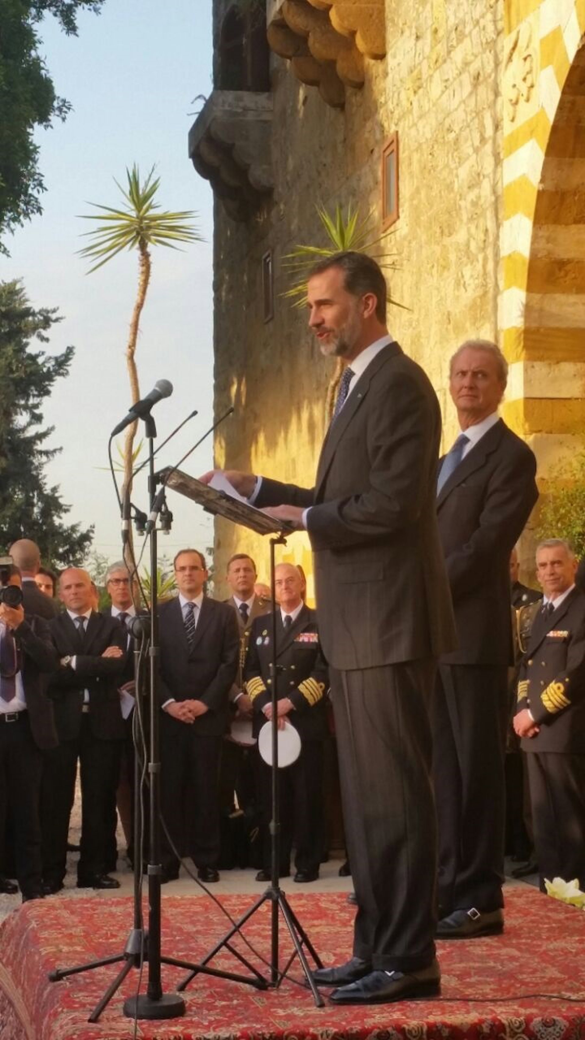 Felipe VI ha pronunciado estas palabras en el marco de un viaje oficial de dos días a este país de Oriente Próximo en los que se reunirá con representantes del Gobierno y mañana, miércoles, visitará al contingente español desplegado en la misión de la ONU, compuesto actualmente por unos 580 efectivos. Es la primera visita del monarca, que ha viajado acompañado por el ministro de Defensa, Pedro Morenés, en una misión de las Fuerzas Armadas en el exterior desde su proclamación en junio del año pasado.