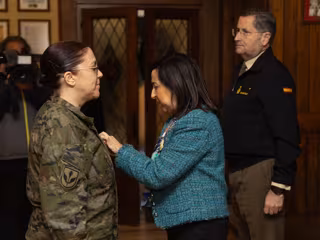 La ministra de Defensa, Margarita Robles, ha condecorado este viernes a diez miembros de la Agrupación de Transporte nº1, con sede en el Cuartel de San Cristóbal-Canillejas, por su trabajo para paliar las consecuencias de la dana de 2024, y ha vuelto a exigir al presidente del PP, Alberto Núñez Feijóo, que se disculpe por asegurar que el ejército estuvo ausente durante los primeros momentos de la tragedia.