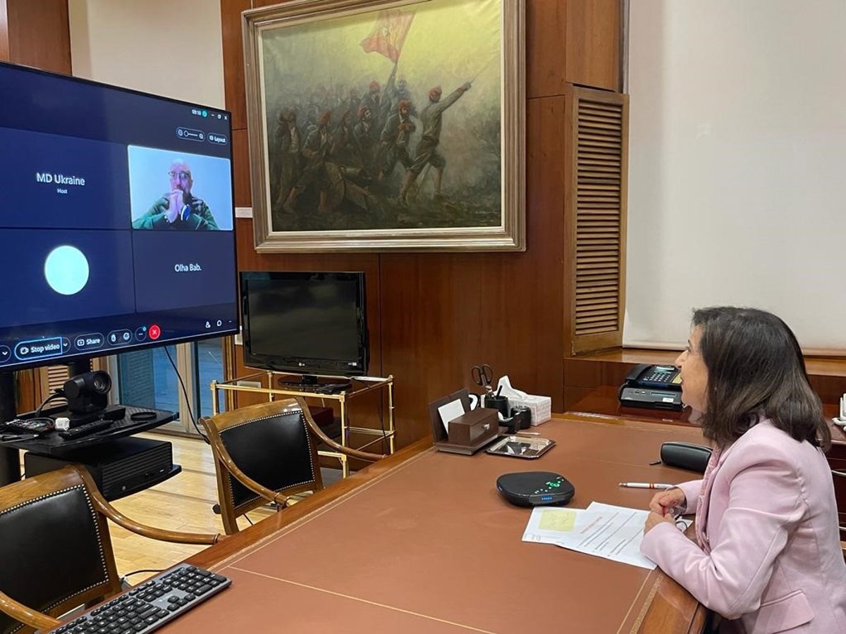 La ministra de Defensa, Margarita Robles, ha mantenido una conversación por videoconferencia con su homólogo ucraniano, Oleksii Reznikov, desde las sedes de sus respectivos departamentos, en la que le ha informado de la actualización de los envíos de material y equipamientos en curso desde España, además de detallar las previsiones de futuras entregas a lo largo de las próximas semanas.