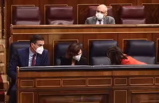 (I-D) El presidente del Gobierno, Pedro Sánchez, la vicepresidenta primera del Gobierno, Carmen Calvo y la ministra de Defensa, Margarita Robles en el Congreso - EUROPA PRESS/E. Parra. POOL - Europa Press