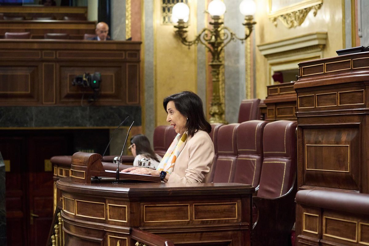La ministra de Defensa, Margarita Robles, interviene durante una sesión plenaria en el Congreso de los Diputados, a 18 de junio de 2025, en Madrid (España). - Jesús Hellín - Europa Press