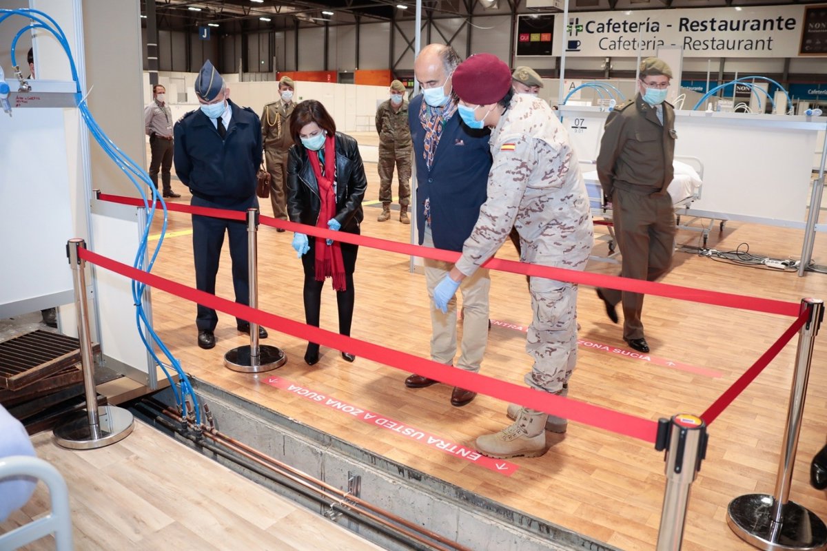 Clausurado el pasado día 1, la ministra de Defensa ha recorrido las instalaciones de este hospital de campaña que contó con el apoyo de las Fuerzas Armadas tanto en su instalación como mantenimiento diario.