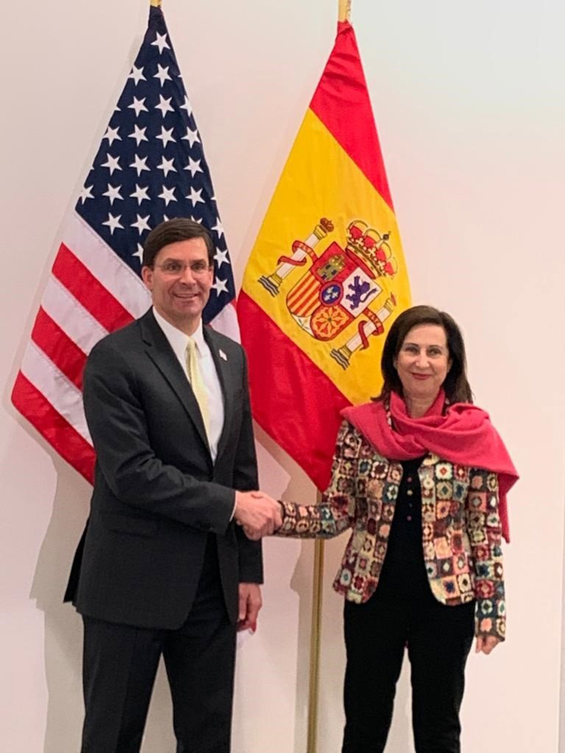 La ministra de Defensa, Margarita Robles, le ha planteado a su homólogo estadounidense, Mark Esper, que Washington reconsidere sus aranceles "exorbitados" a un "socio" como España con el que colabora en la OTAN y en el ámbito de Defensa.
