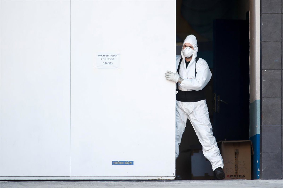 Miembros de las Fuerzas Armadas, sobre todo de la Unidad Militar de Emergencias (UME) son los encargados de trasladar allí los cuerpos desde los hospitales de la Comunidad de Madrid.